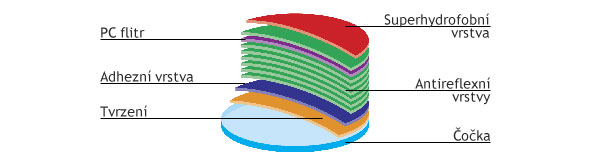 - odstraňuje odrazy a odlesky na přední i zadní ploše čočky