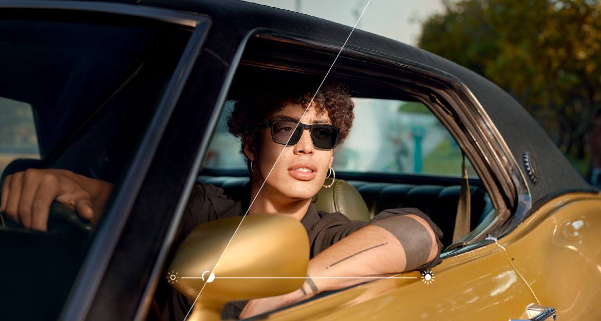 Brýlové čočky Transitions se automaticky přizpůsobí měnícímu se světlu.